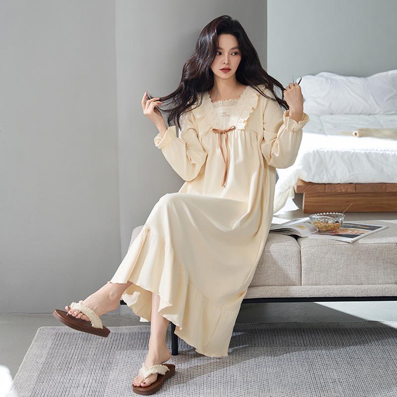 Женская ночная сорочка для беременных из 100% чистого хлопка с антибактериальным эффектом, в корейском стиле, с длинным рукавом - свободного кроя для осени/зимы/весны — купить товар онлайн с бесплатной доставкой по всему миру!