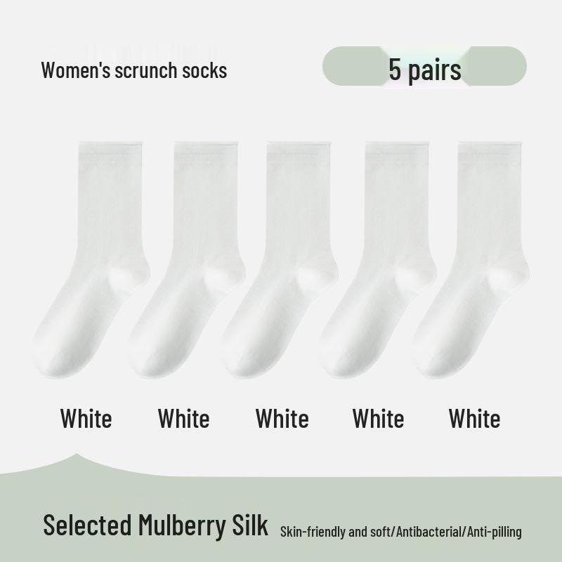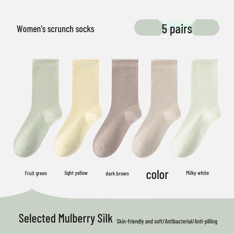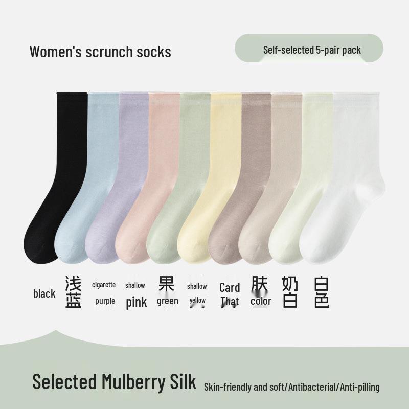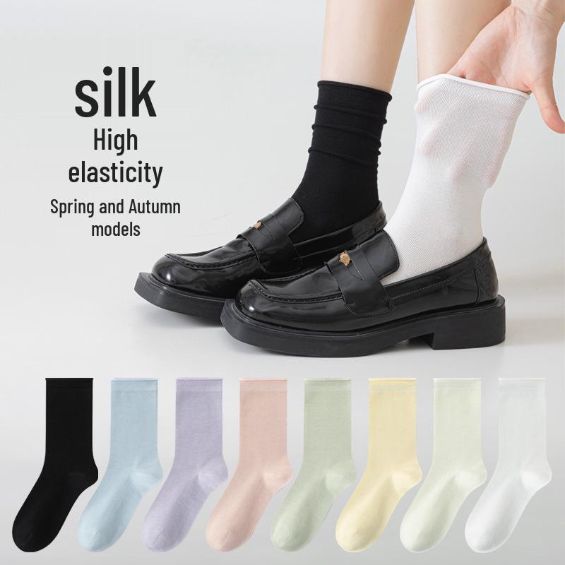 Весенне-осенние антибактериальные носки до середины икры из тутового шелка - Однотонные, устойчивые к запаху, для лоферов