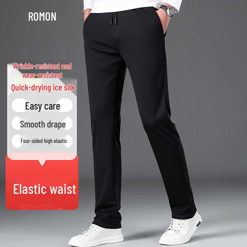 Romon Men's Ice Silk Stretch Straight-Leg Casual Pants