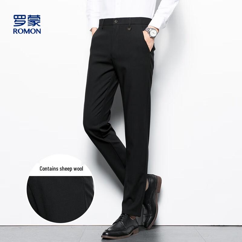 Romon Men's Wool Blend Straight-Leg Casual Dress Pants
