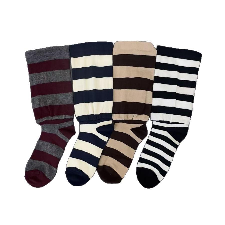 Хлопковые гольфы до середины икры в корейском стиле с расклешенным полосатым дизайном - Женские модные двухслойные носки-гольфы — купить товар онлайн с бесплатной доставкой по всему миру!