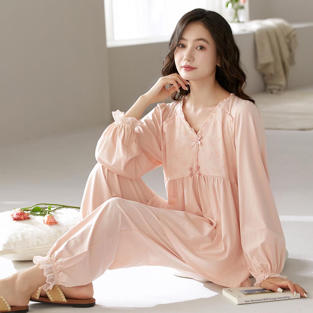 Женский пижамный комплект из лайкры и хлопка: Осенний топ с длинным рукавом и V-образным вырезом и брюки, однотонные, повседневная домашняя одежда — купить товар онлайн с бесплатной доставкой по всему миру!