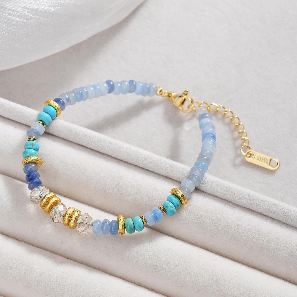 Богемский браслет из хрусталя с бусинами из синего авантюрина и бирюзы