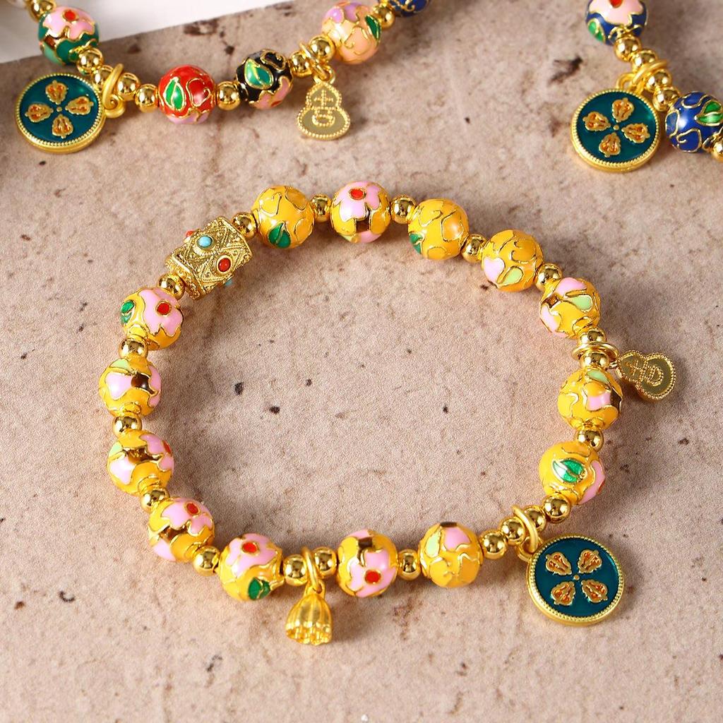 Перегородчатая эмаль Пять Богов Богатства Эмалевый Цветочный Браслет для Женщин