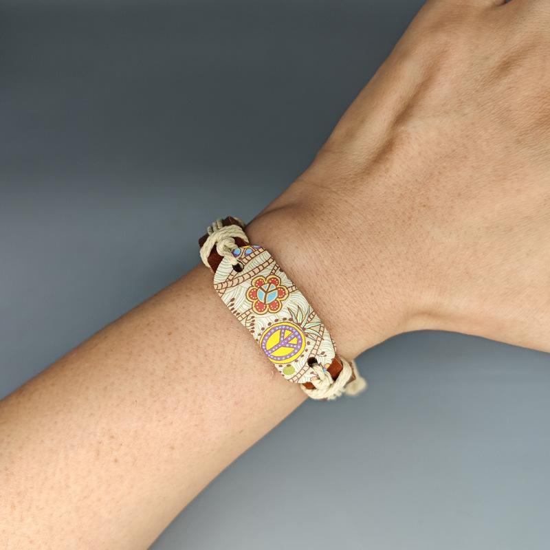 Винтажный браслет со знаком мира: Европейский, американский, японский и корейский стиль с пеньковой веревкой и кожей для женщин