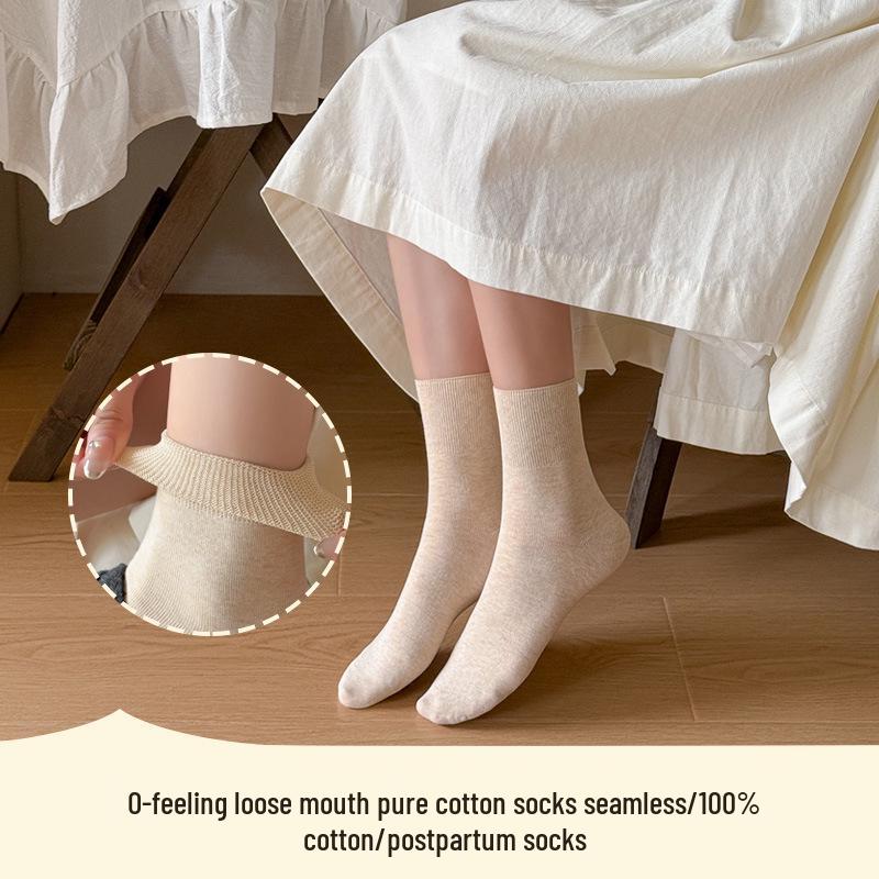 Женские носки до середины икры из чистого хлопка с широкой резинкой - Не сдавливающие, Антибактериальные, Устойчивые к запаху, Подходят для осени и зимы