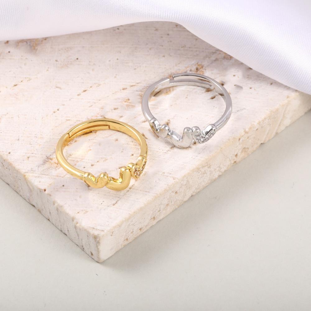 18k Gold Plated Heart-Shaped Ring for Women with Micro-Set Zircon and Adjustable Thin Band