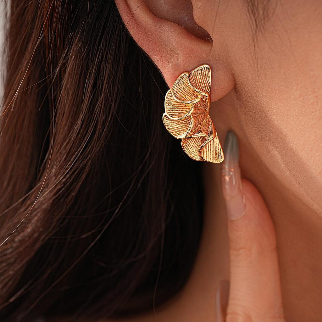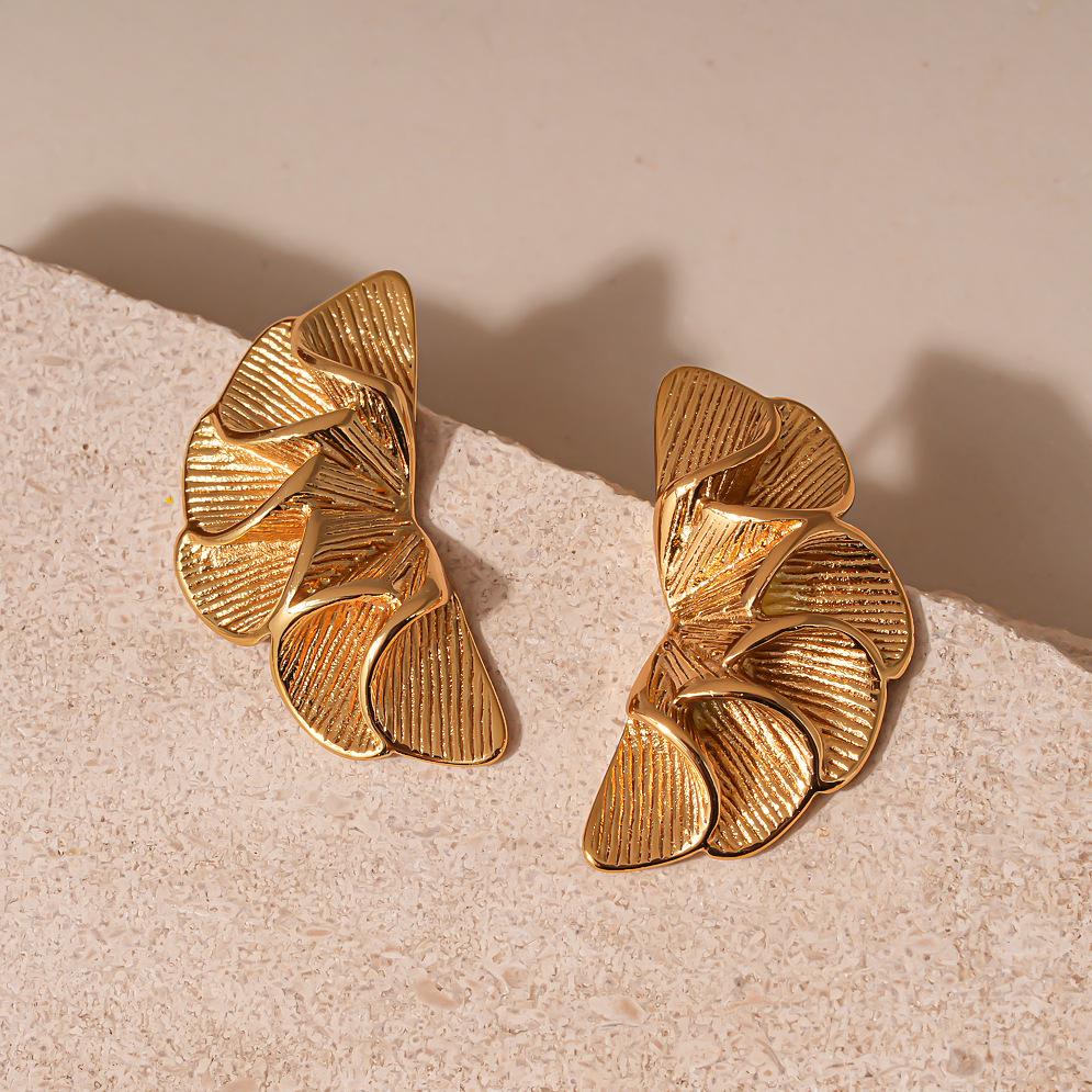 Stainless Steel Flower Pendant Stud Earrings - European & American Stylish Design, Textured, Advanced Sense Fashion Jewelry