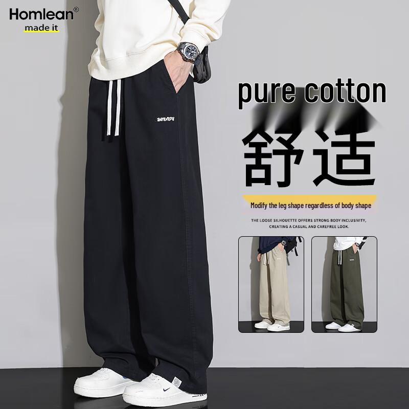 Homlean Men's Cotton Casual Straight-Leg Pants HZ92