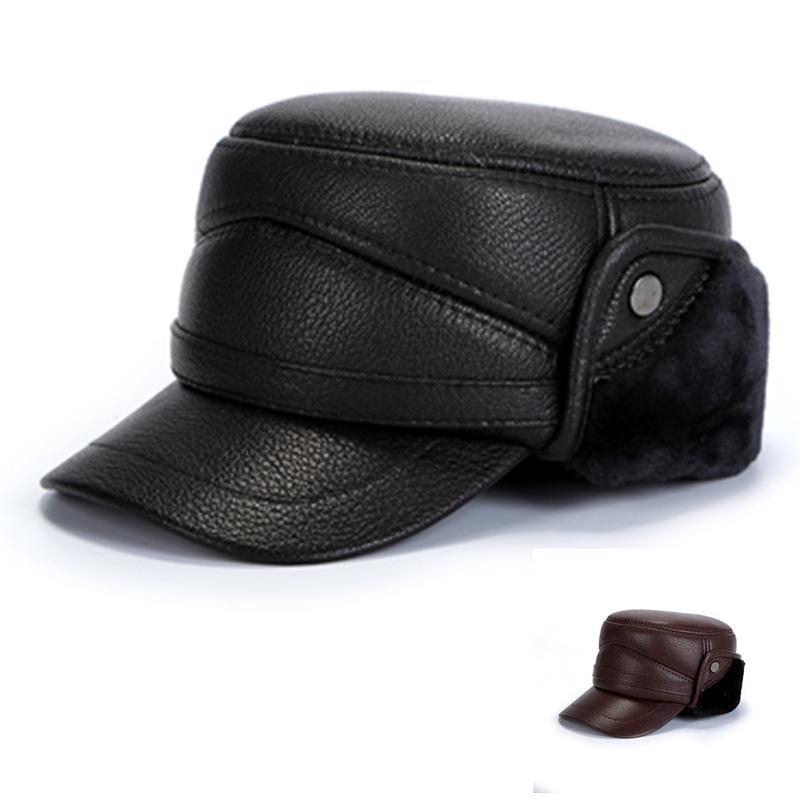 Мужская зимняя шапка из коровьей и овечьей кожи - Толстая, теплая, в стиле Лэй Фэн, для среднего и пожилого возраста