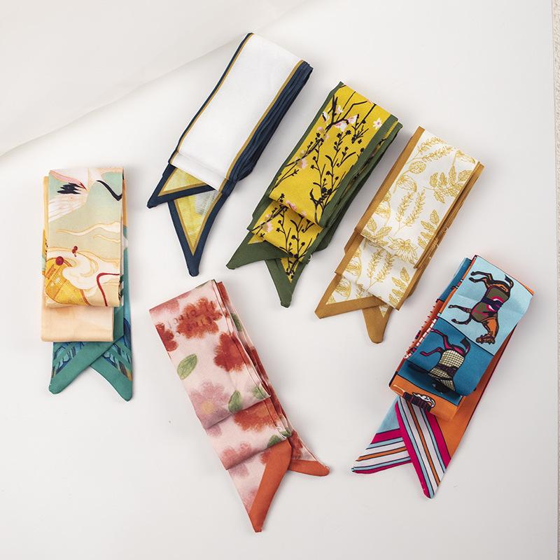 Женский весенне-летний шелковый платок-повязка на голову - Свежий оранжево-желтый шейный платок, резинка для волос, лента для ручки сумки — купить товар онлайн с бесплатной доставкой по всему миру!