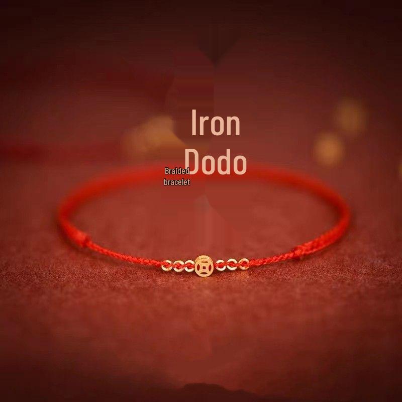 Qian Duoduo 2024 Модный красный шнурок медная монета браслет на ногу: Тонкий, Сексуальный, Древний Стиль для Женщин