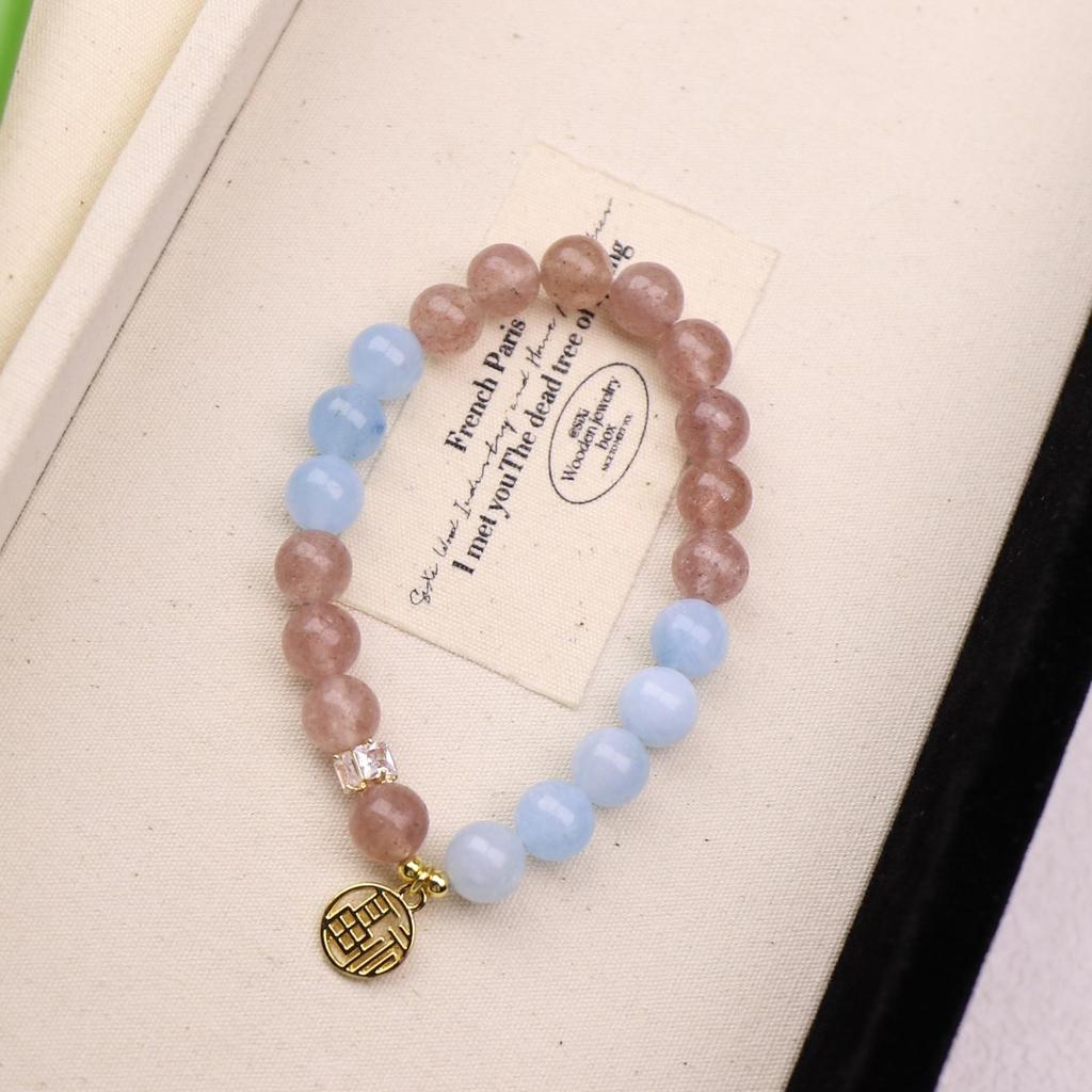 Браслет из натурального клубничного кристалла и бирманского нефрита с цирконом - Новый 2025 год, китайский стиль для женщин