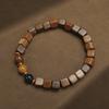 Трехцветный браслет из кубиков сандалового дерева с черной грушей в этническом стиле