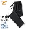 DELHUI Мужские повседневные спортивные брюки прямого кроя из ледяного шелка