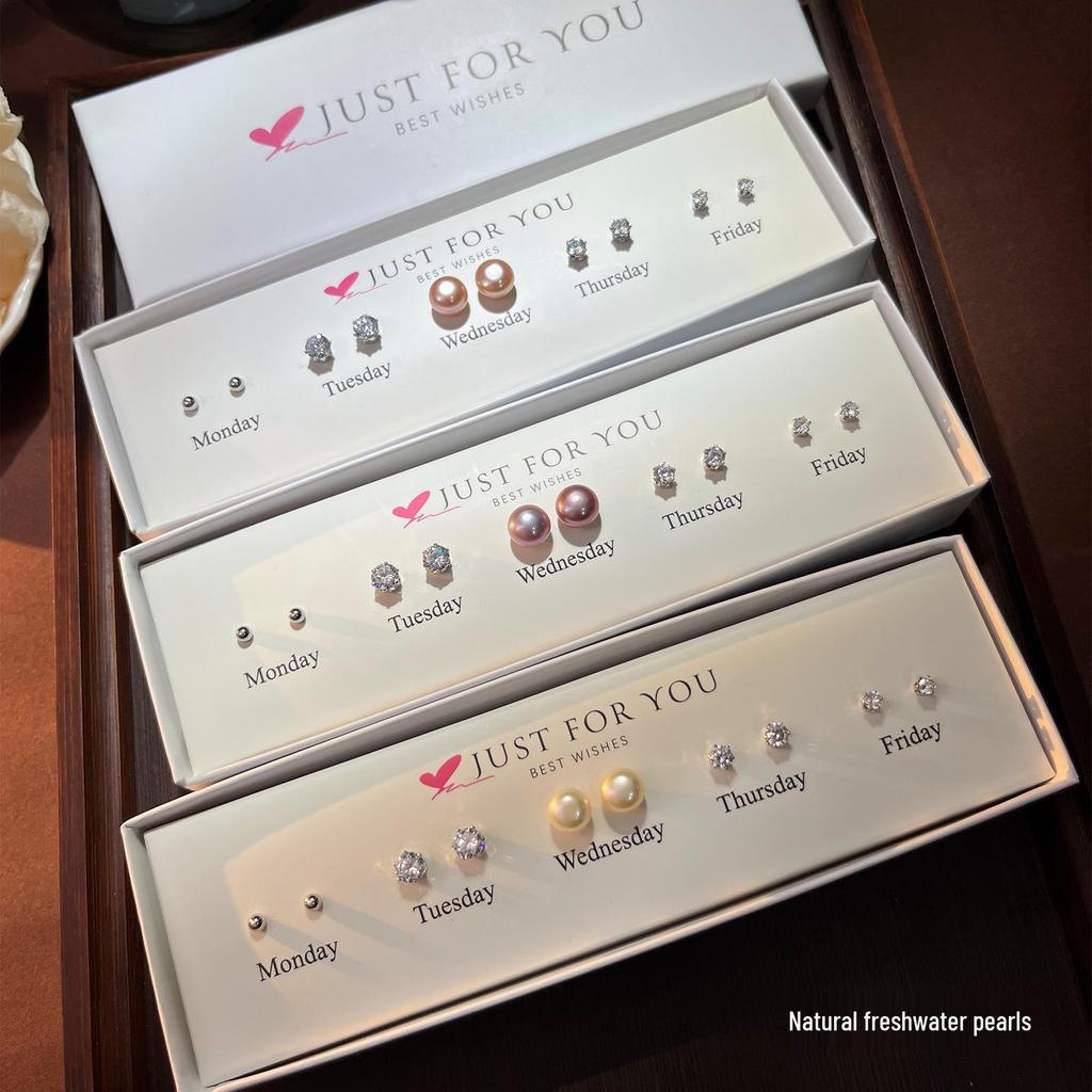 Французские минималистичные серьги-пусеты из натурального пресноводного жемчуга для женщин - Набор на неделю, Пирсинг хряща, Подарок в коробке.