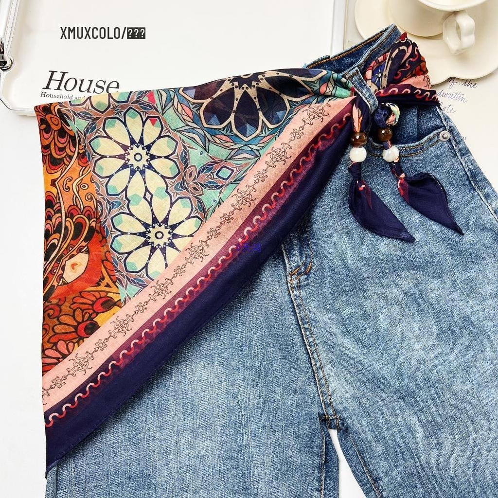 Ретро Этнический Многослойный Треугольный Шелковый Шарф: Универсальный пояс, головной платок и аксессуар для талии — купить товар онлайн с бесплатной доставкой по всему миру!