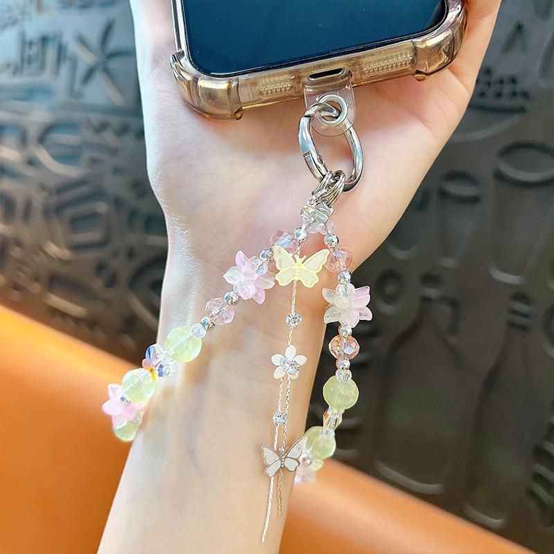 Элегантный брелок-подвеска для телефона с кисточкой и бусинами в виде бабочки