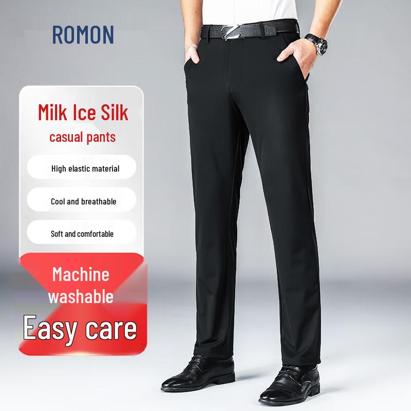 ROMON Men's High-Elastic Ice Silk Business Casual Straight Pants — купить товар онлайн с бесплатной доставкой по всему миру!
