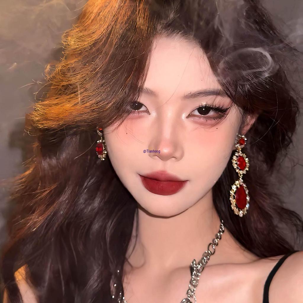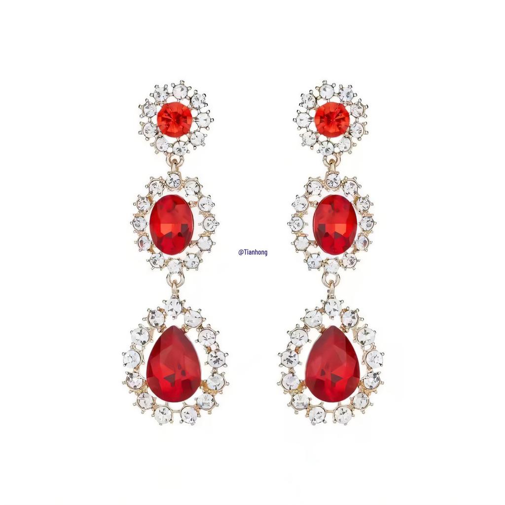 Винтажные красные серьги-капли с цирконом - Роскошные свадебные аксессуары в придворном стиле