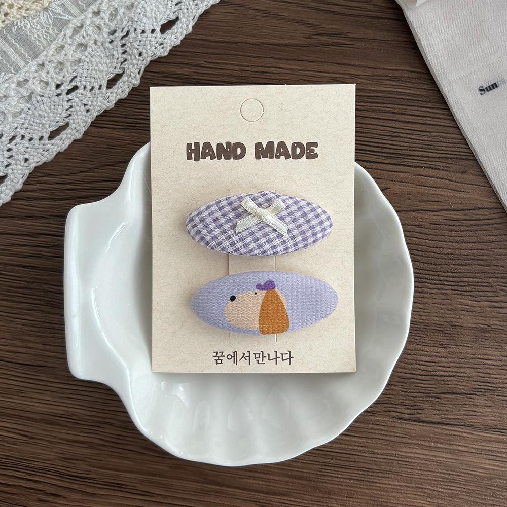 Korean Style Pink Geometric BB Clip & Plaid Hairpin Set for Girls (2-Pieces)