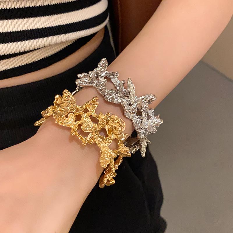 Элегантный плиссированный металлический браслет-манжета с цветком-бабочкой: Роскошный браслет-заявление для женщин