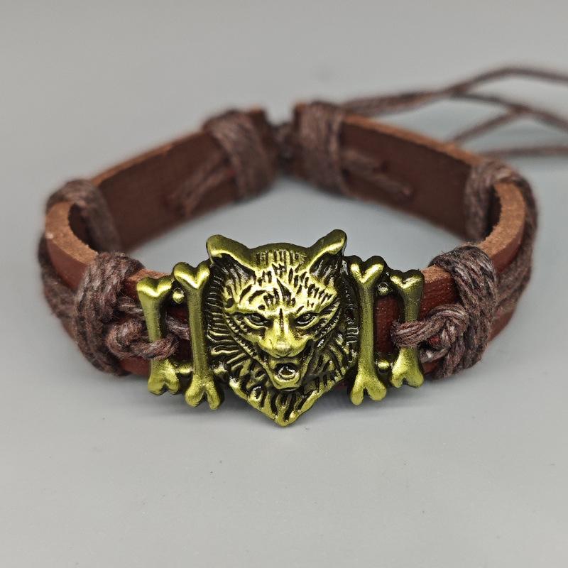 Европейский и американский ретро плетеный браслет из ПУ кожи с регулируемой головой волка для мужчин