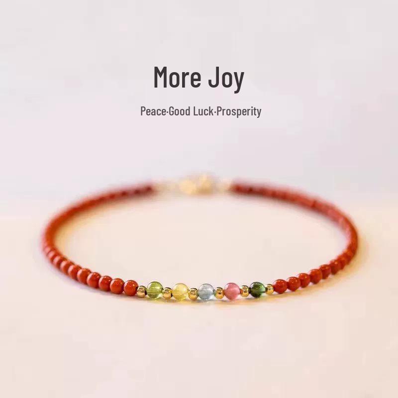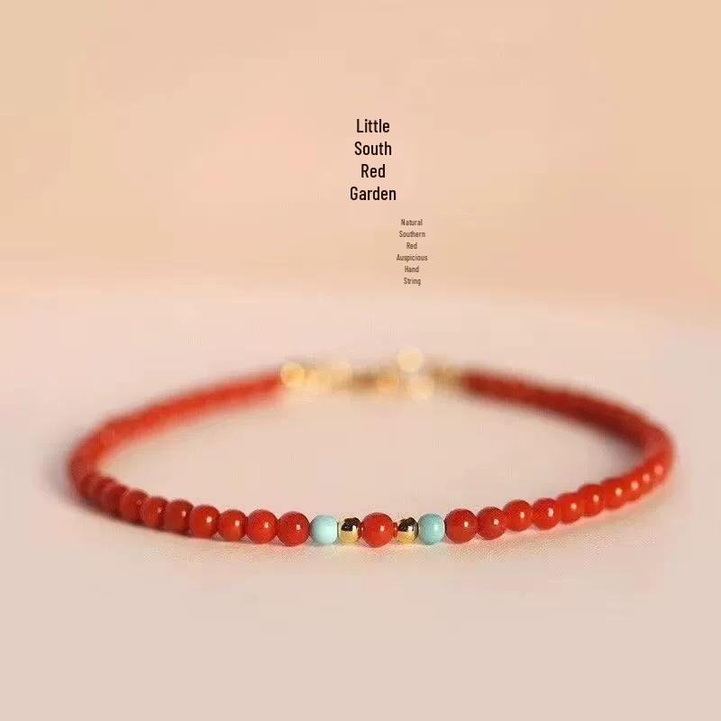 Браслет на удачу из южного красного агата и бирюзы турмалина - Тонкая красная нить ручной работы цвета хурмы.
