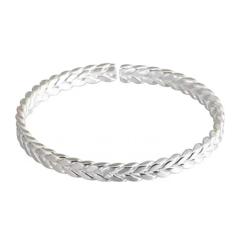 Открытый браслет-манжета "Колос пшеницы" серебристого цвета - Дизайн "Колос Мира", Модный и Универсальный Роскошный Аксессуар
