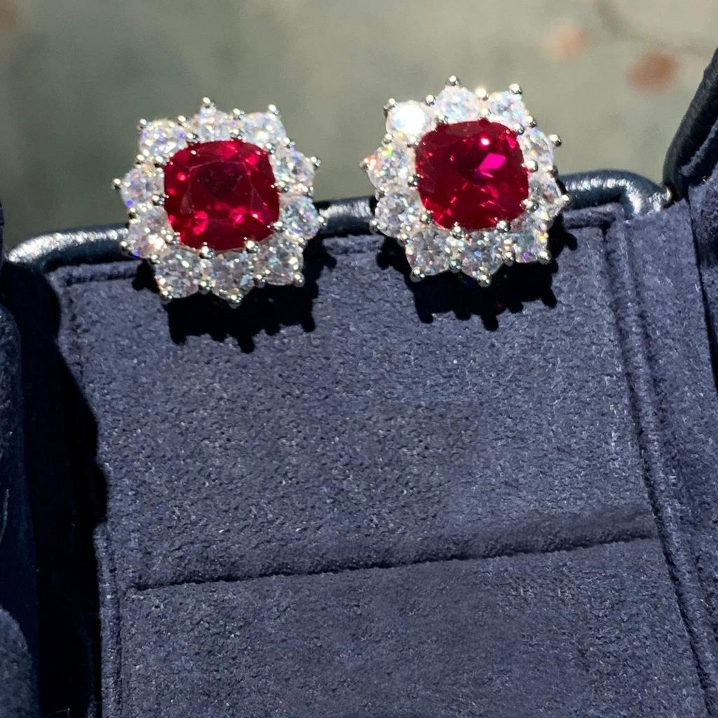 Стильный комплект украшений: открытое кольцо с красным турмалином и серьги с цирконами для женщин