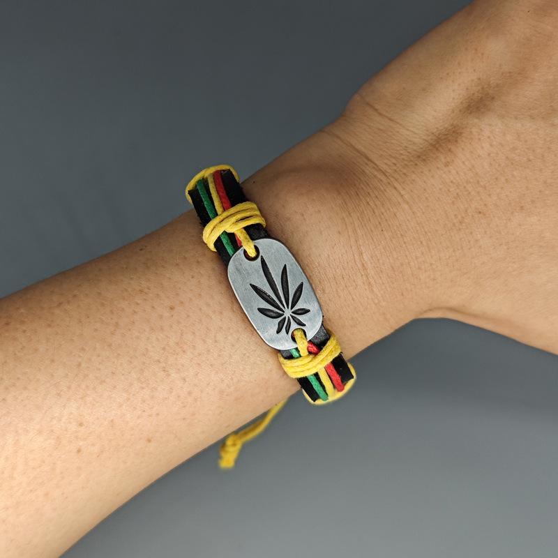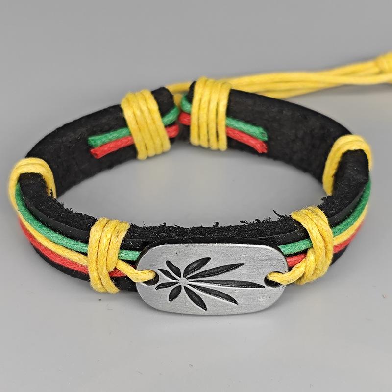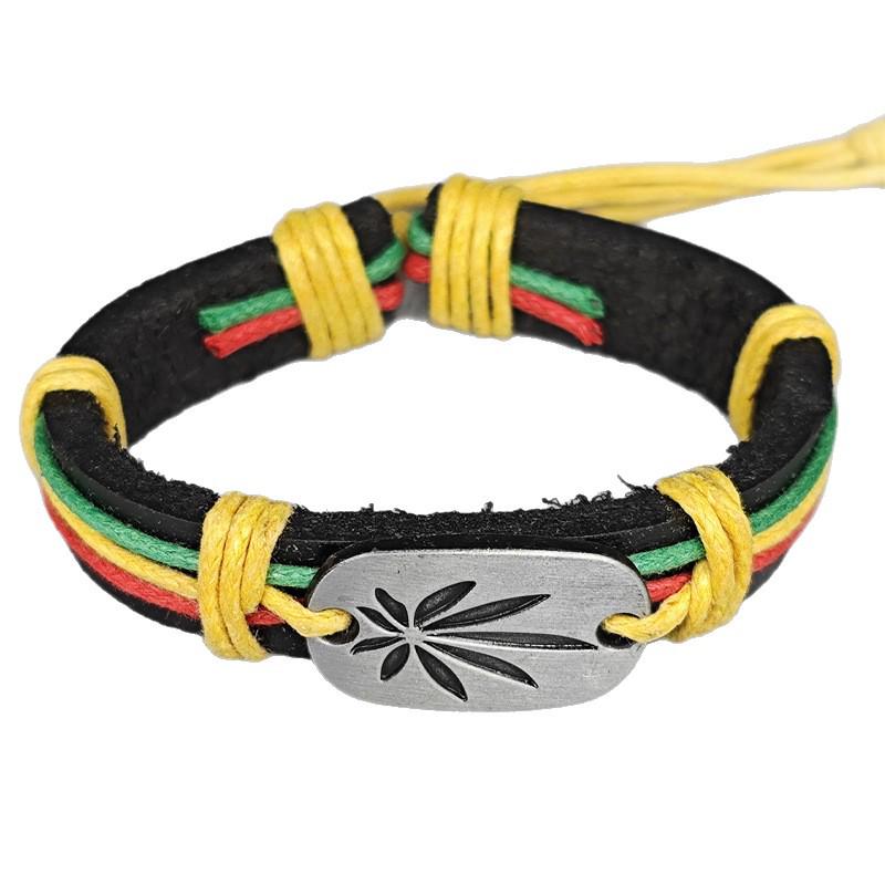 Ямайский красно-желто-зеленый кожаный браслет - Хип-хоп уличные танцы колор-блок мужской