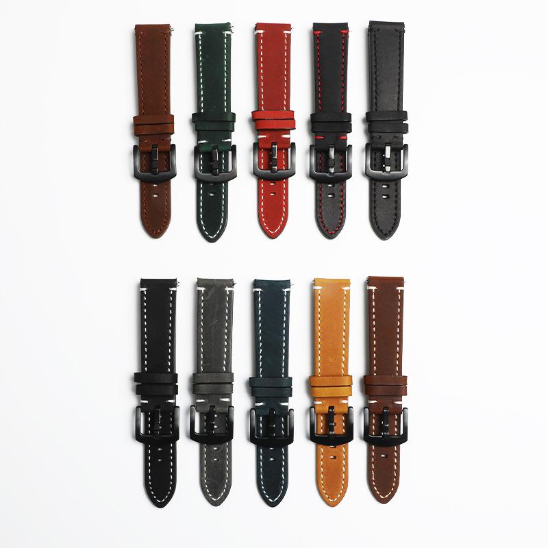 Ремешок для смарт-часов Crazy Horse из натуральной кожи в стиле ретро, 18 мм, 20 мм, 22 мм, высококачественная коровья кожа с быстросъемным креплением.