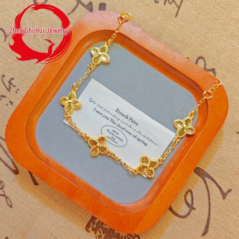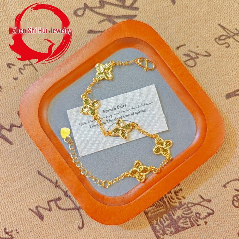 Браслет в виде четырехлистного клевера, вдохновленный Xiaohongshu, с золотым покрытием – изысканные украшения в стиле легкой роскоши