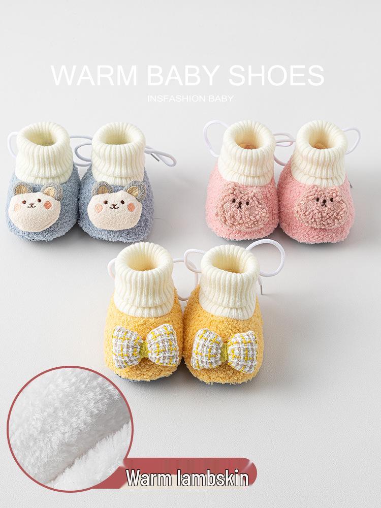 Warm Lambswool Fleece Baby Prewalker Shoes - Non-Slip, Thickened for Autumn/Winter — купить товар онлайн с бесплатной доставкой по всему миру!