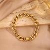 Женский браслет-кубинская цепь из титановой стали с покрытием из 18-каратного золота и инкрустацией бриллиантами - Роскошная европейская и американская мода