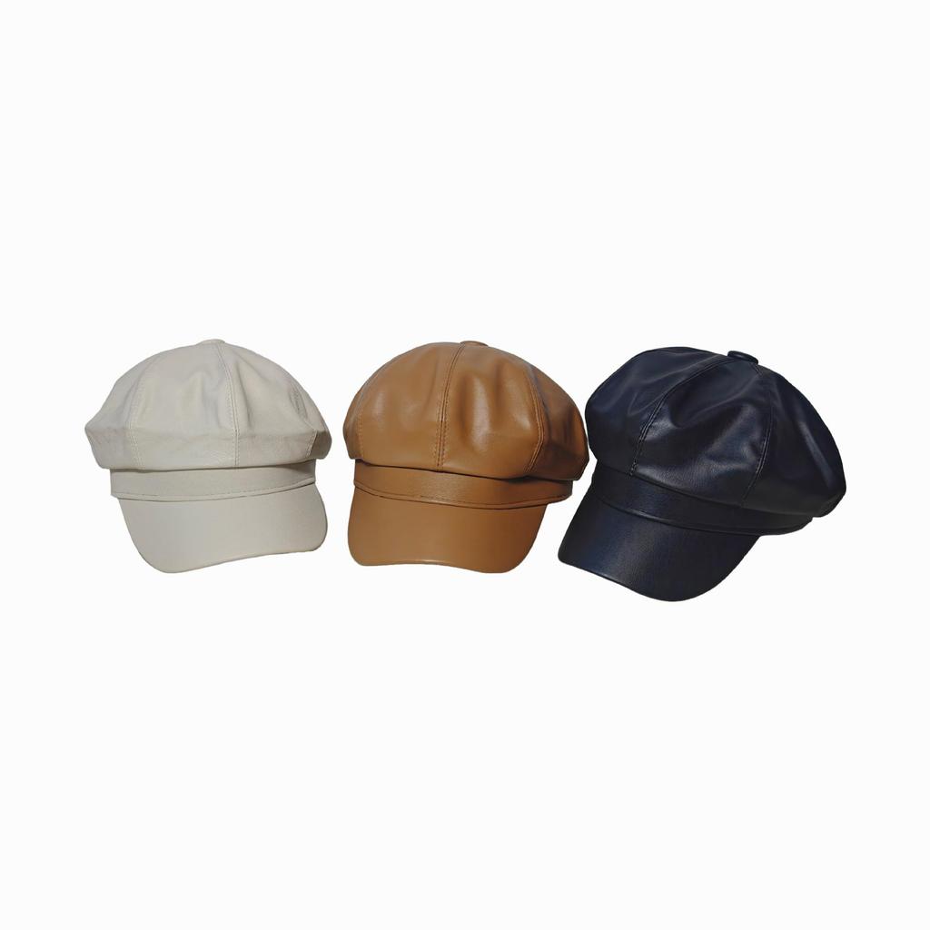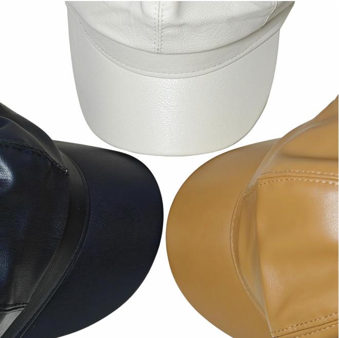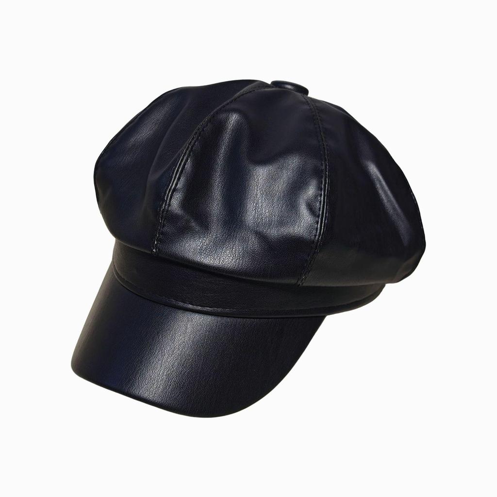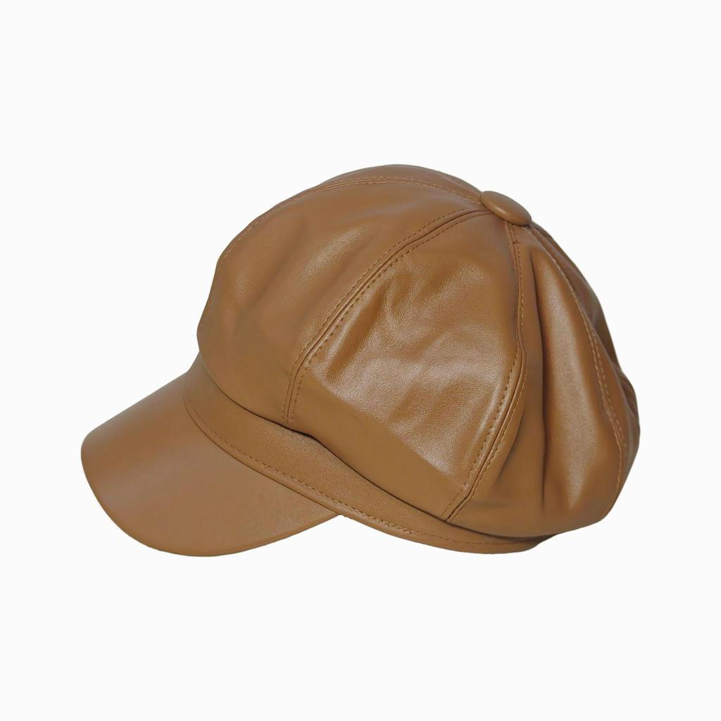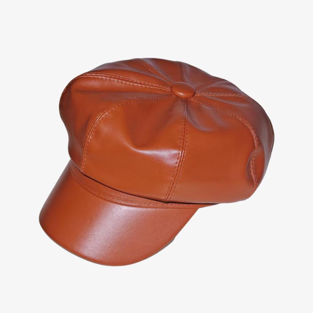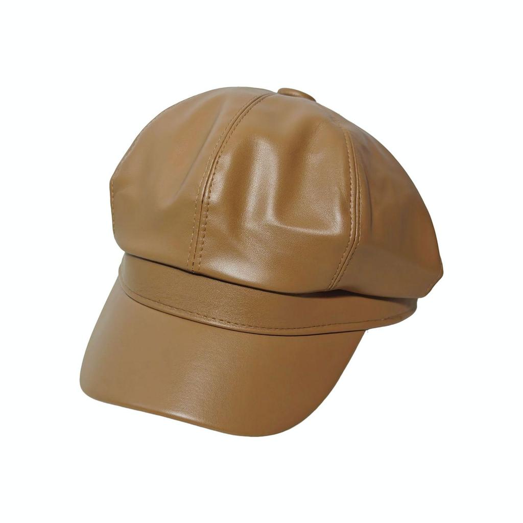 Женская унисекс восьмиугольная кепка-утка из ПУ кожи - Однотонная, в стиле легкой роскоши, универсальный куполообразный дизайн.