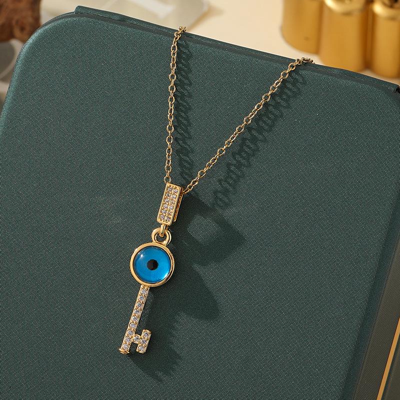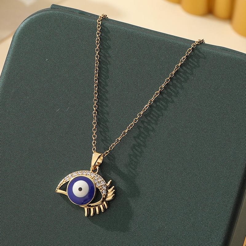 Популярное ожерелье из титановой стали синего цвета «Злой глаз» для женщин – Универсальное и персонализированное ювелирное изделие-цепочка для ключицы