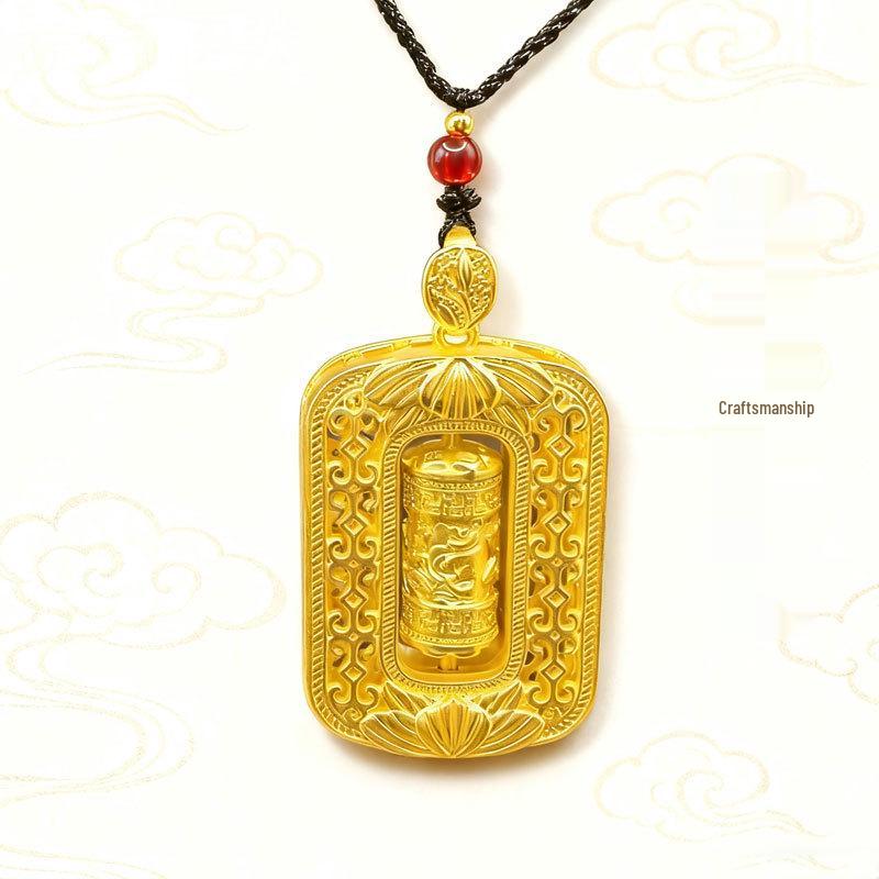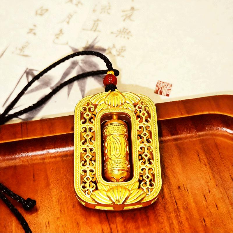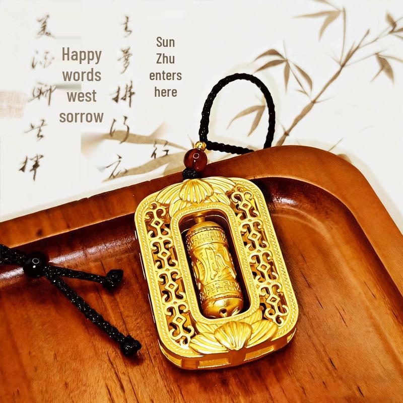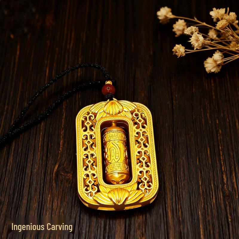 Ретро китайский кулон-молитвенный барабан с шестислоговой мантрой - Стильный вращающийся полый дизайн для мужчин и женщин