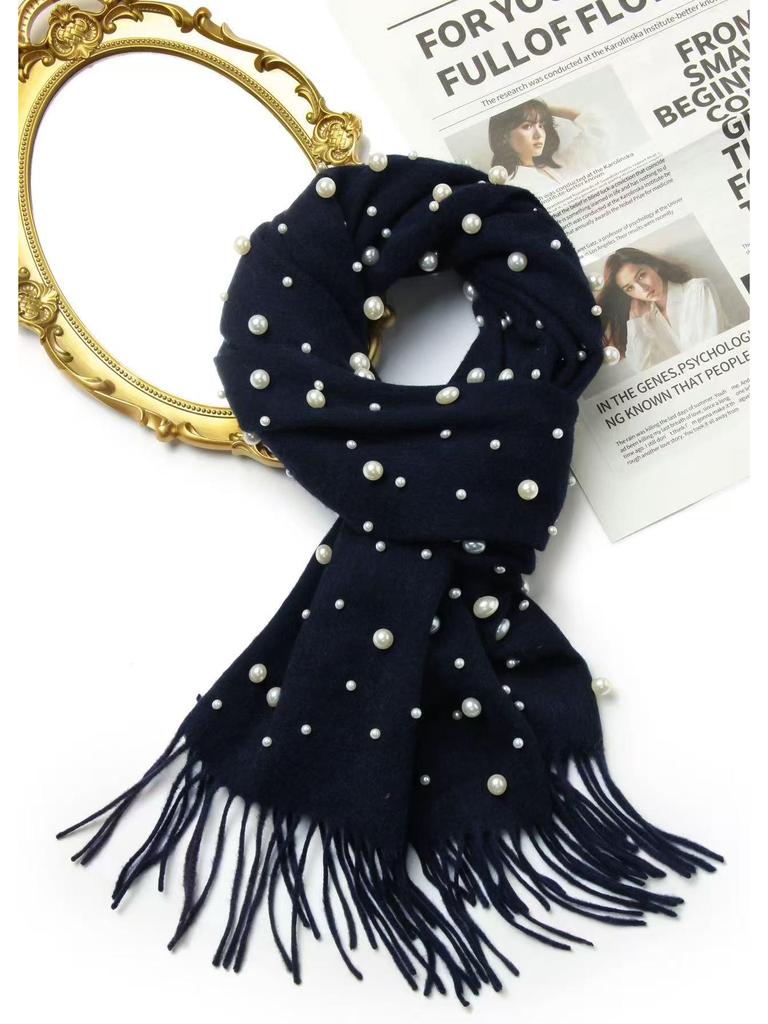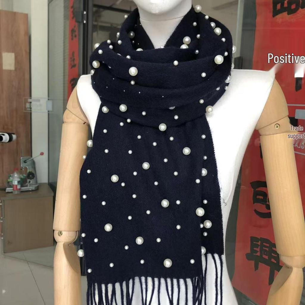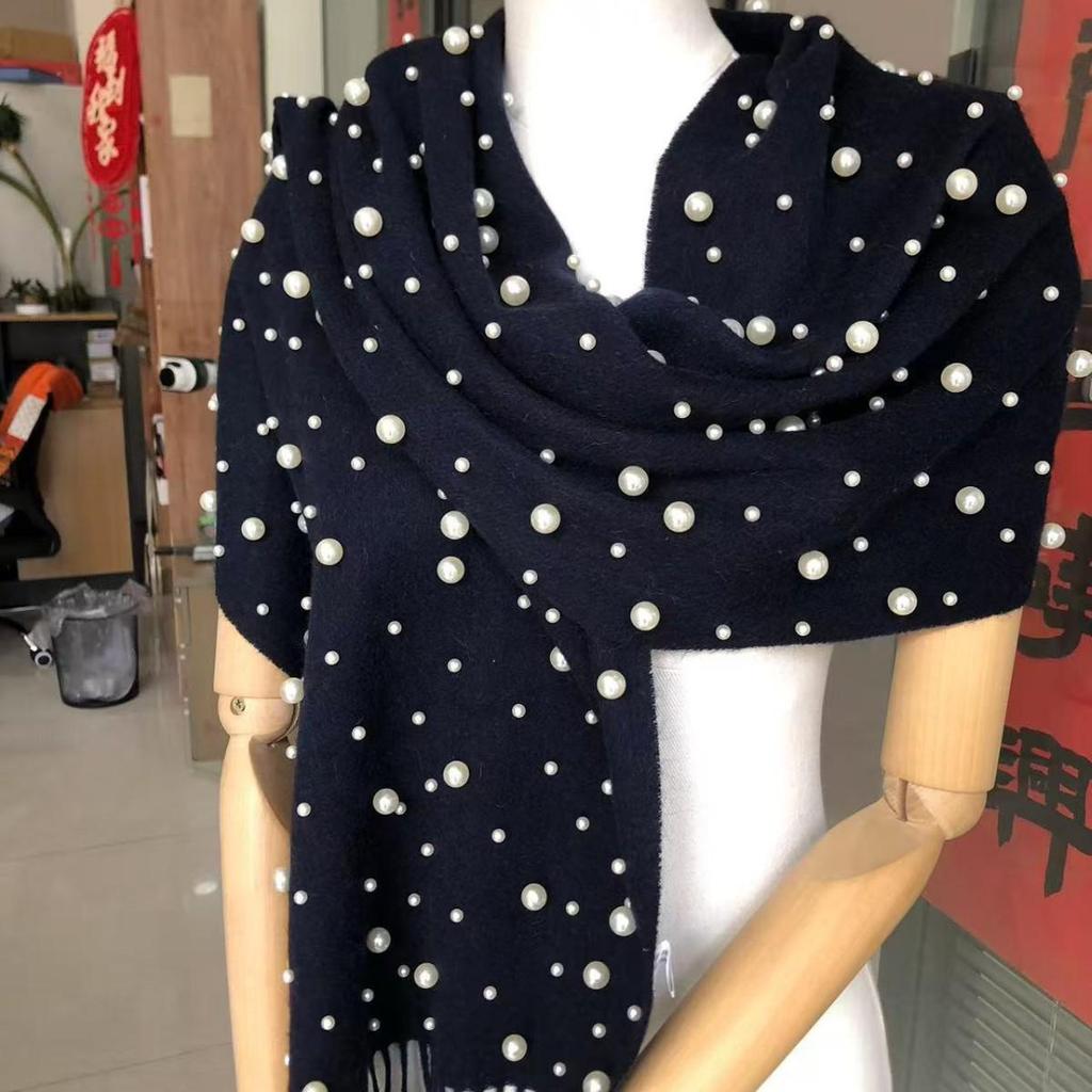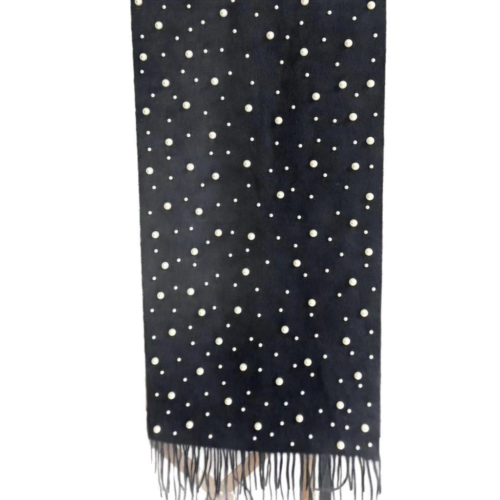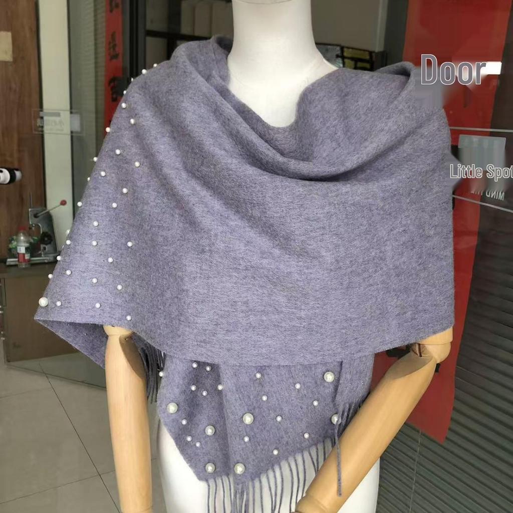 Женский шарф-палантин из чистой шерсти с бусинами и кистями - Жемчужное тепло DPW035