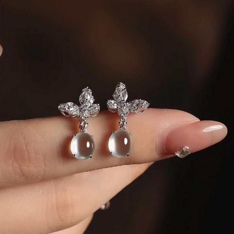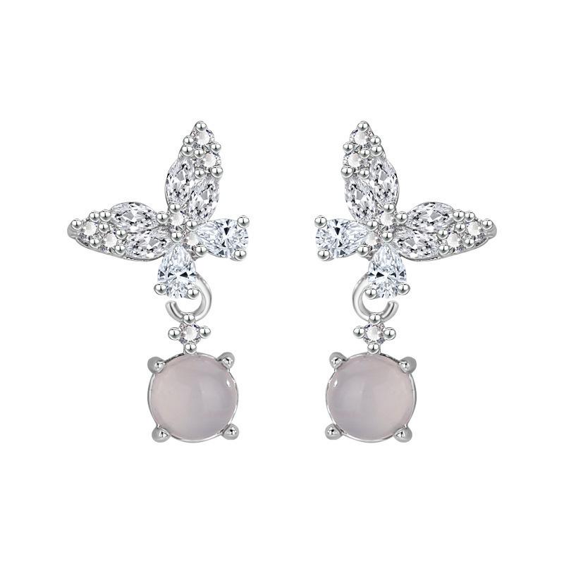 Серьги-пусеты с бабочками, инкрустированные цирконом премиум-класса для женщин - Ледяной прозрачный дизайн «капля росы»