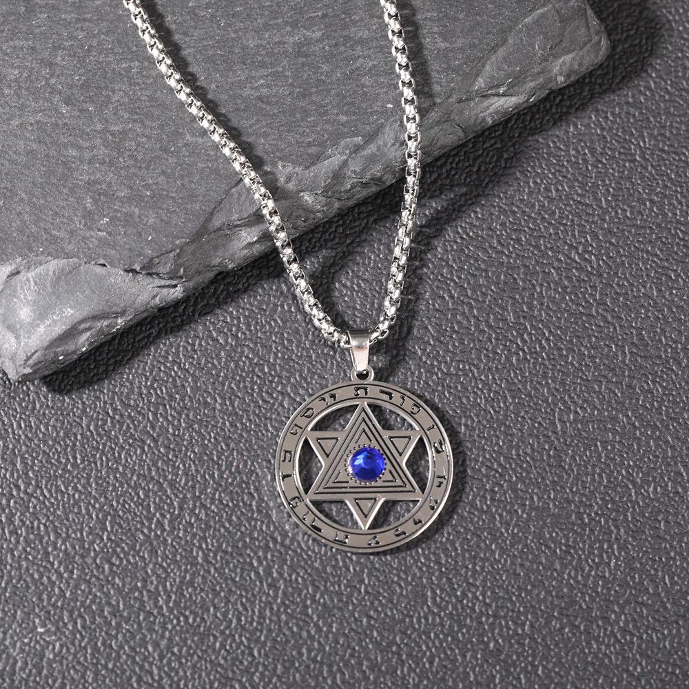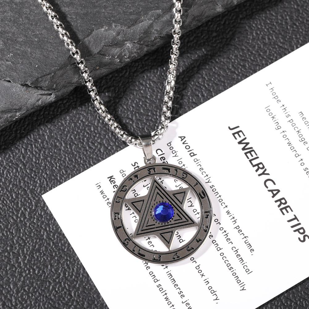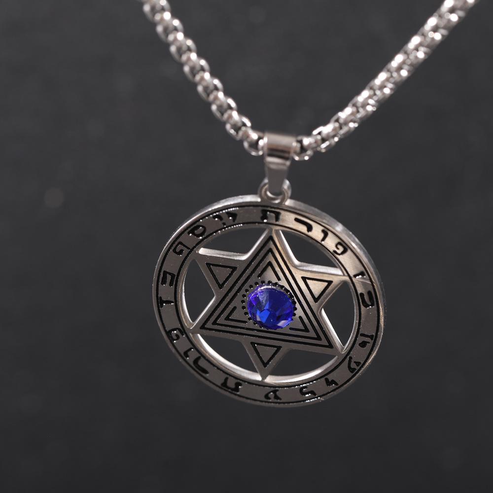 Мужское ожерелье в европейском и американском стиле «Глаз ангела и дьявола», синий бриллиант гексаграмма, украшения из титановой стали