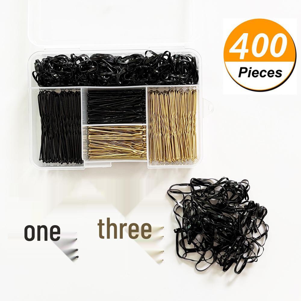 Набор аксессуаров для волос из 400 предметов: Невидимки, U-образные шпильки, резинки для волос и минималистичные металлические зажимы для причесок.