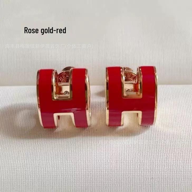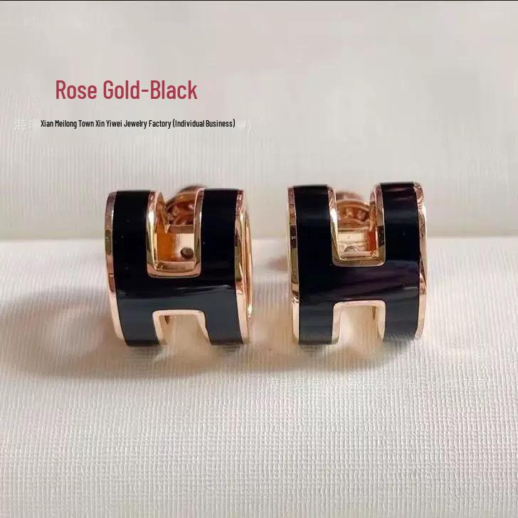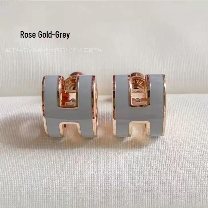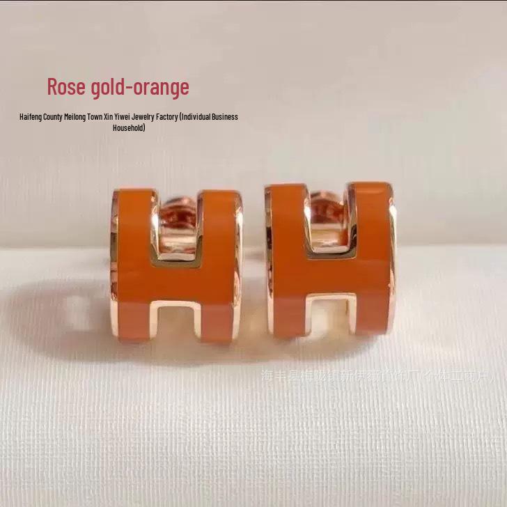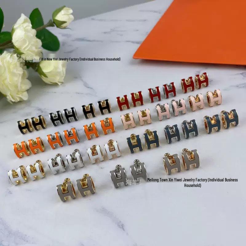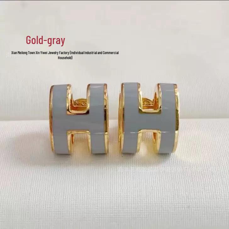 Gold H Letter Enamel Stud Earrings, 18k Thick Plated, White Milk Tea Color, Women’s Fashion Jewelry.