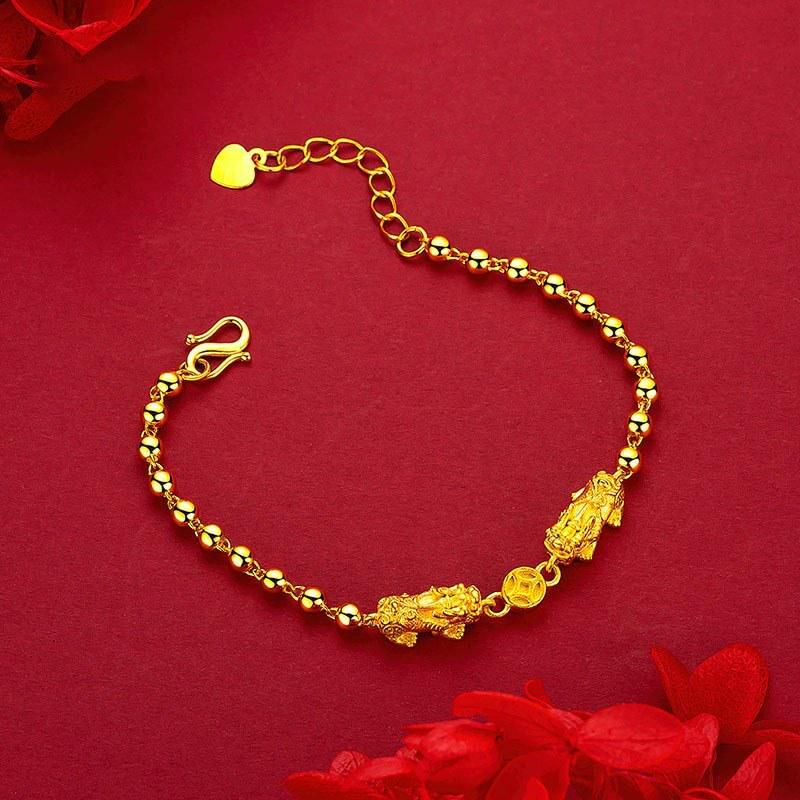 Браслет из бусин Пиксю с золотым покрытием: Роскошные украшения из светло-золотого металла для женщин