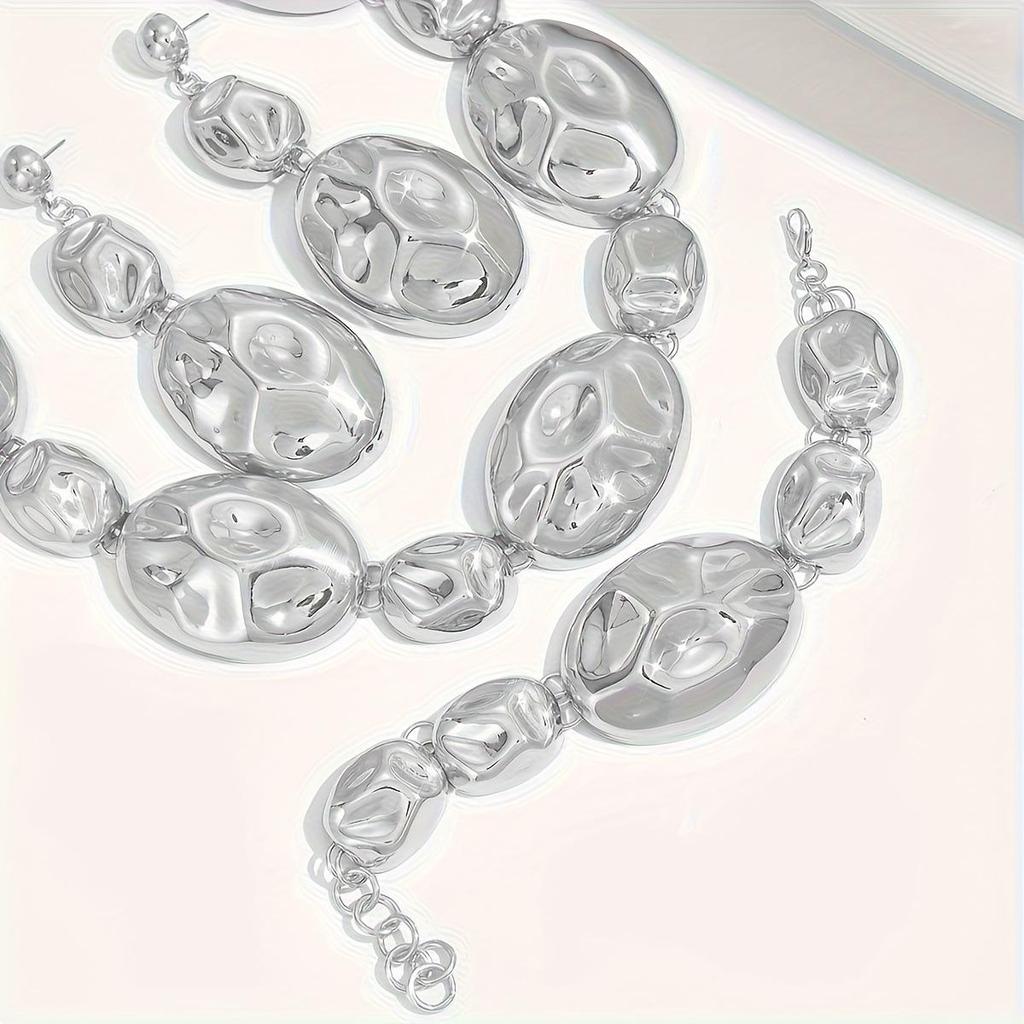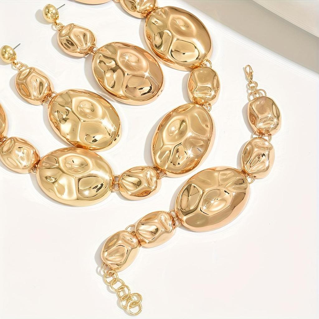 Элегантный овальный плиссированный ювелирный набор: Неправильной формы глянцевые серьги-подвески и ожерелье