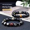 Мужской ретро браслет из бусин серебристого обсидиана — купить товар онлайн с бесплатной доставкой по всему миру!