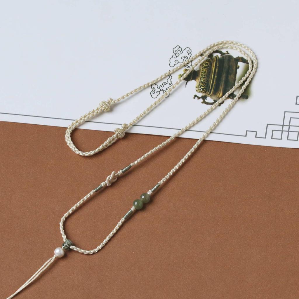 Элегантный плетеный вручную кулон из жадеита с золотой амбровой пряжкой мира - регулируемый женский шнурок