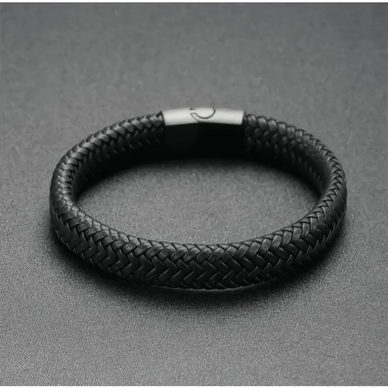Модный Персональный Мужской Браслет из Черной Кожи с Чешуей Рыбы - Винтажный Панк-Браслет