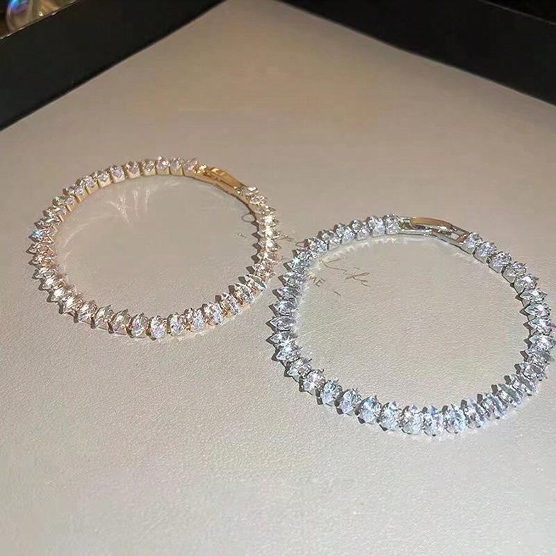 Женский теннисный браслет из циркония в форме капли: Цепочка Маркиза с зубцами, Эксклюзивное модное изделие