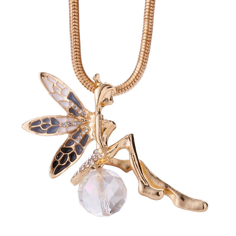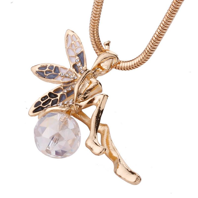 Ожерелье Крыло Ангела, ожерелье-цепочка для свитера с кристаллами, подвеска-капля, ювелирное украшение в подарок